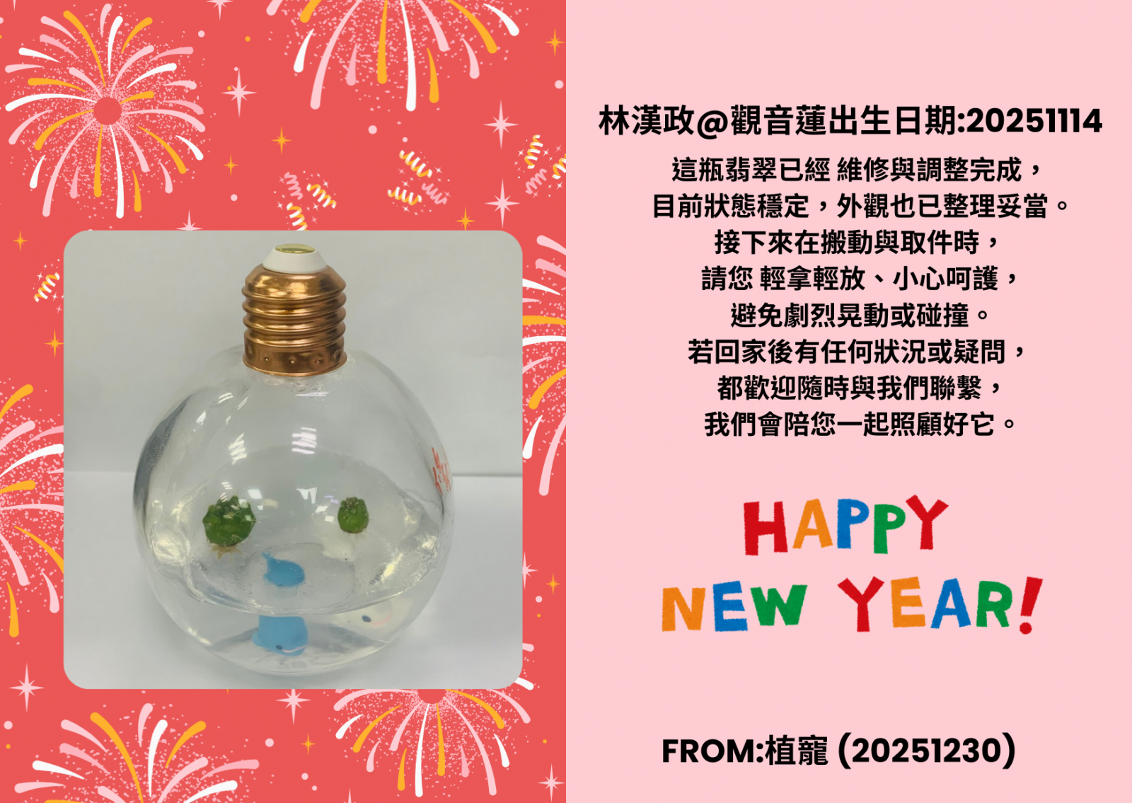 若您的植寵在使用過程中出現任何狀況,請 第一時間與我們聯繫。