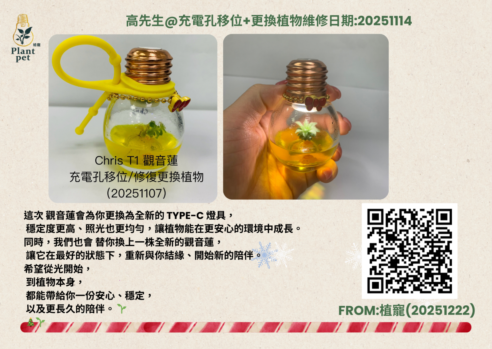 我們會協助您 檢查、修復並留底紀錄,確保每一位客人的植寵都能持續健康成長。